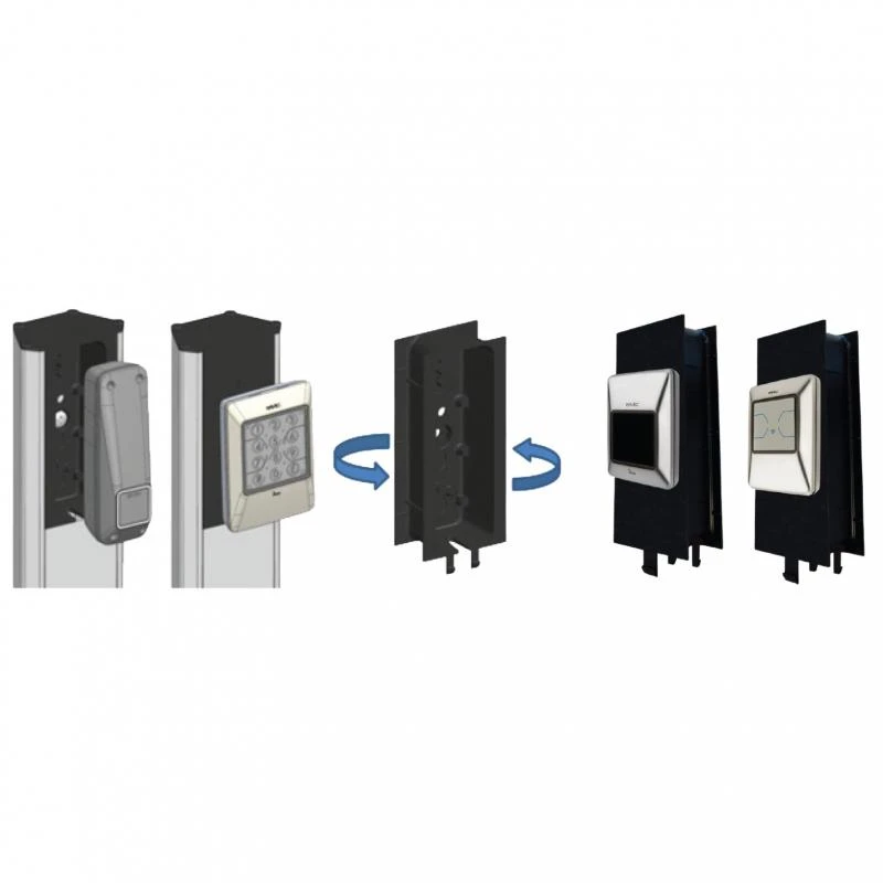 Colonnette FAAC en aluminium à l’unité équipée d’un adaptateur double face pour l’instaltion des photocellules XP20 et XP30, du cvier à code XKP et des lecteurs de contrôle d’accès XTRR, XKPR et XTR B.