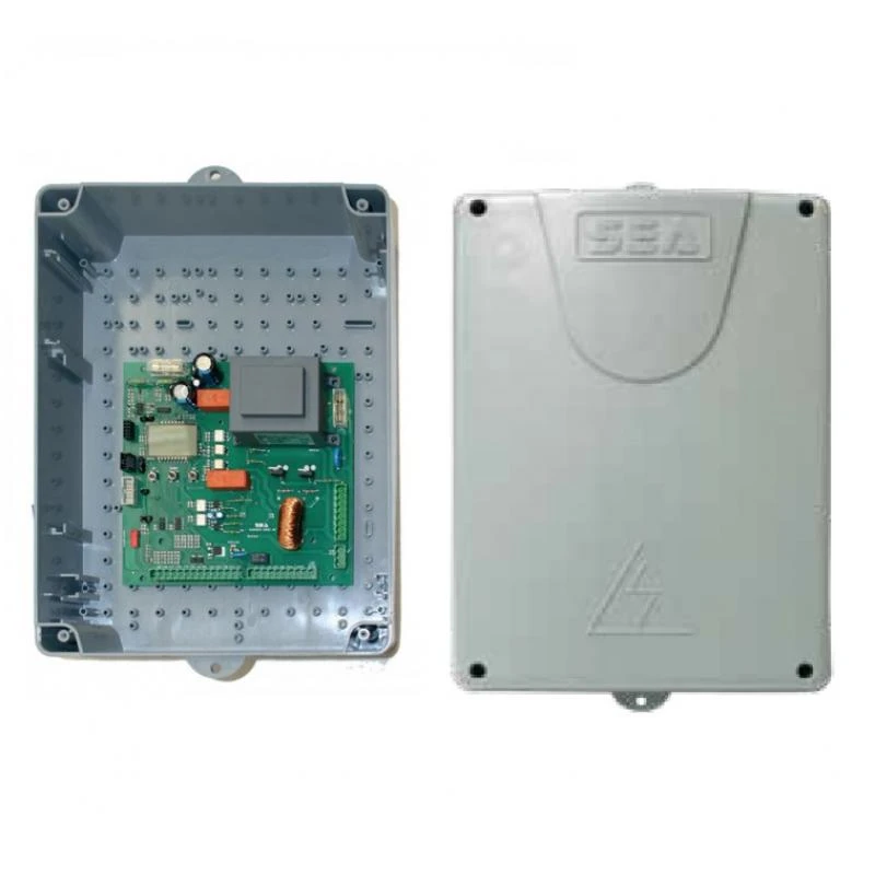 GATE 2 DG SEA Armoire de commande avec boîtier pour automatismes de portail battant en 230V. Elle assure le fonctionnement de 2 moteurs avec ou sans fins de course, en même temps ou avec des régges en décalé, en ouverture piéton ou tout autre position en fonction des possibilités du site et des désirs de l’utilisateur. Compatible ou intégrée à l’opérateur suivant : MINI TANK PLUS AC PG, HALF TANK, FULL TANK DOUBLE, SURF H, FIELD OIL PLUS, tous en 230V.