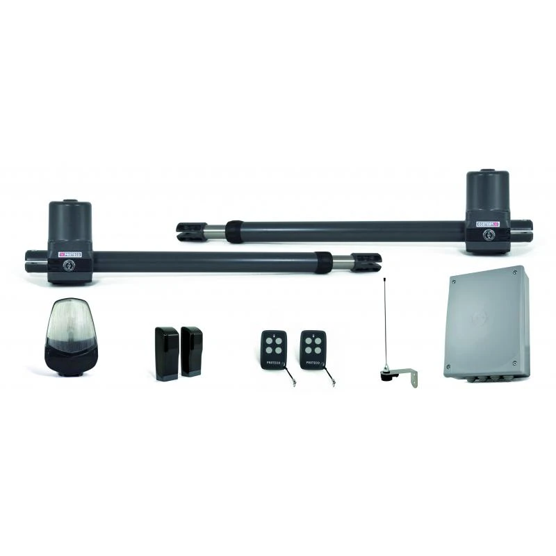 Motorisation Ă©lectromĂ©canique de marque PROTECO pour portail 2 battants d’une rgeur maximum de 2 x 2 m, et d’un poids maximum de 2 x 150 Kg.