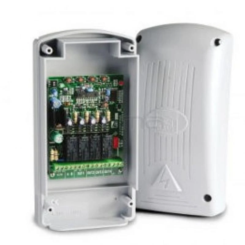 S0004N CARTE ELECTRONIQUE CAME Pour cvier à codes numérique tels que S5000, S6000, S7000. Elle est quadricanal et peut être installée dans l’armoire électronique directement ou à l’extérieur dans une boîte adaptée suivant les besoins. Il est possible de brancher une commande radio sur le 1er canal. Alimentation en 12-24V et LED de signalisation.