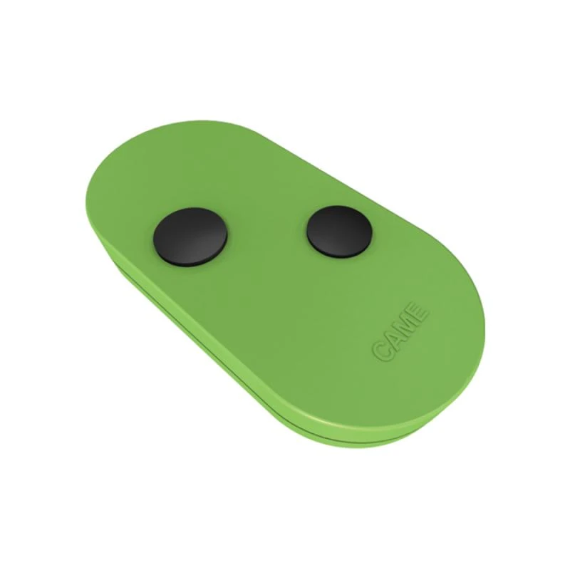 TOPD2FES CAME Télécommande 2 canaux verte à code fixe, double fréquence (433,92 – 868,35 MHz), avec fonction d’autoapprentissage. Fonctionne avec une pile au lithium CR2032.
